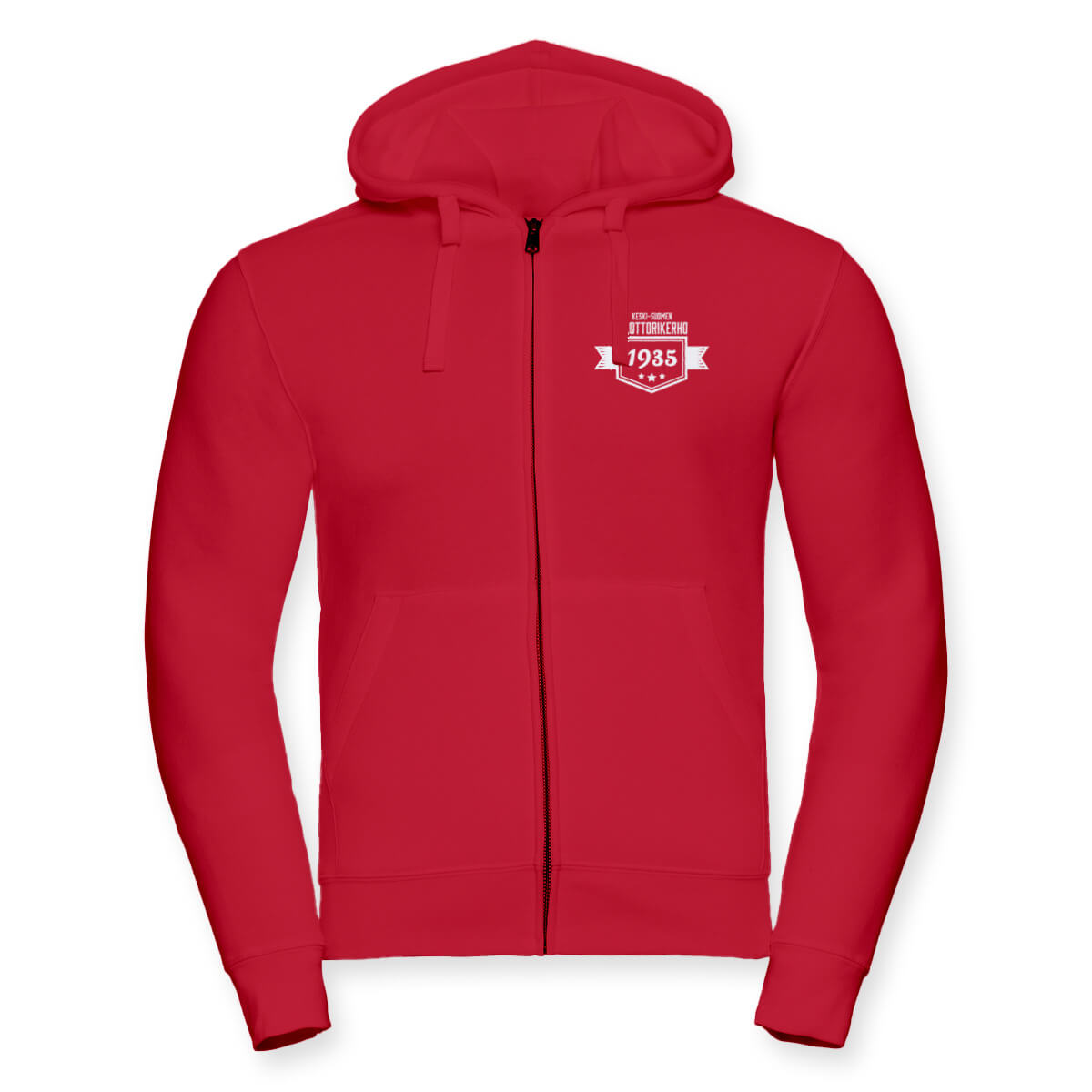 Laadukkaassa vetoketjulla varustetussa hupparissa on moderni leikkaus ja muotoilu. Erityisen miellyttävä pitää päällä! Hupparissa on Keski-Suomen Moottorikerhon tunnukset edessä ja takana.